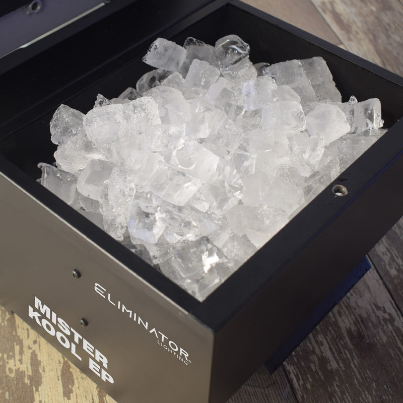 The Mister Kool EP continues the legacy of its predecessors, using standard water-based fog fluid and ice cubes to create the sought-after 'dry ice' effect without the expensive of dry ice and bulky fog chillers. Its ice hopper can hold up to 4 pounds of ice, ensuring a consistent low-lying fog effect.
