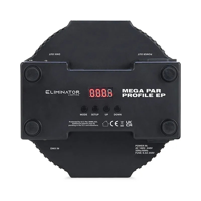 With 48 built-in light shows and 64 Color Macros, the Mega Par Profile EP is perfect for uplighting rooms and illuminating small stages. Its intelligent design allows it to rest on the ground or snugly within truss systems, thanks to the unique placement of power and DMX ports on the side, not the rear.